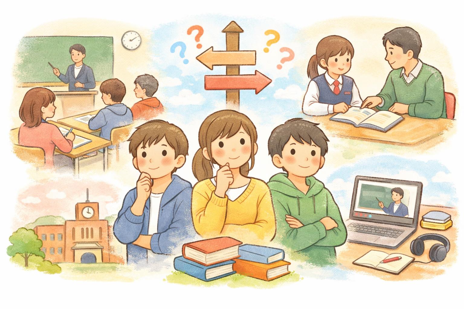「独学でも頑張れる」「学校の授業だけで十分」と考える人もいるかもしれません。しかし、大学受験は限られた時間の中で膨大な範囲を効率的に学習し、ライバルと競い合う厳しい戦いです。塾や予備校は、その戦いを有利に進めるための強力な武器となり得ます。